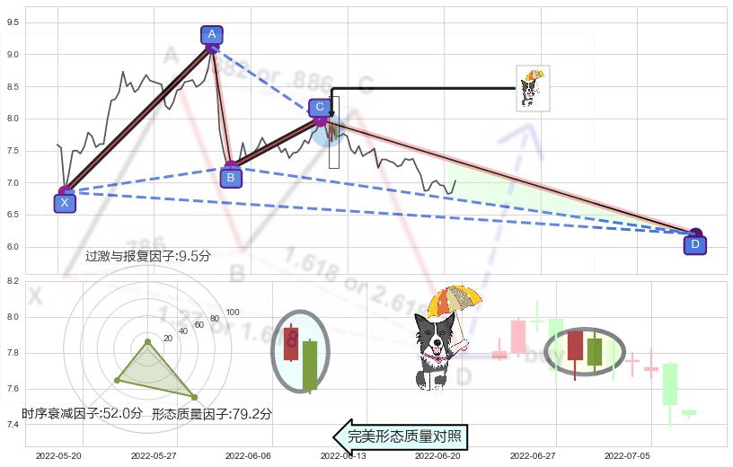 ➢ 🕰 价格走势在2022-08-08至2022-08-08期间形成锤头线(锤子线),残存影响值:7.85