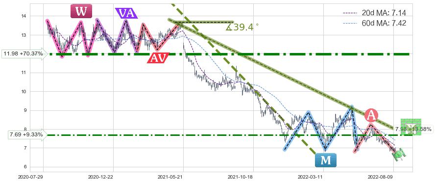 ♘ 阻力价格位7.69,可信任强度59.17%,距离最后交易2022-08-12形成的收盘价格7.03相差 +9.33%