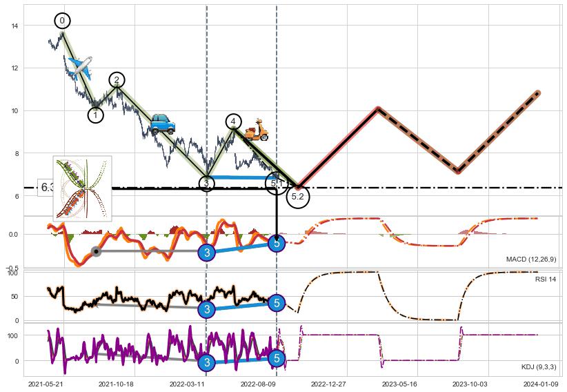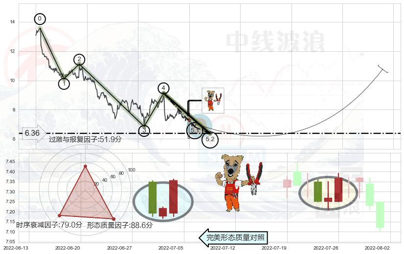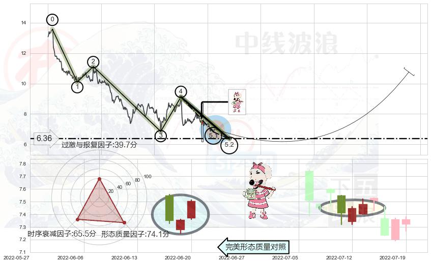 ➣ 5.1: 预测当前第5浪位置(2022-08-10, 6.82),仍然有下跌空间