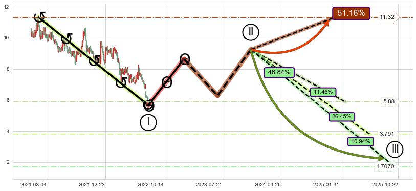 ➣ 大趋势循环浪继续向下概率48.84%