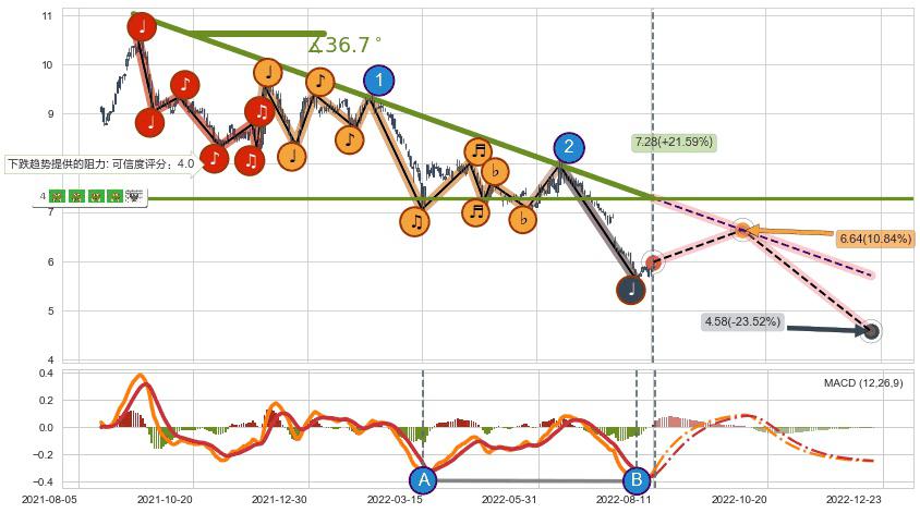 ♘ 阻力价格位8.15,可信任强度87.33%,距离最后交易2022-08-12形成的收盘价格5.99相差 +36.10%