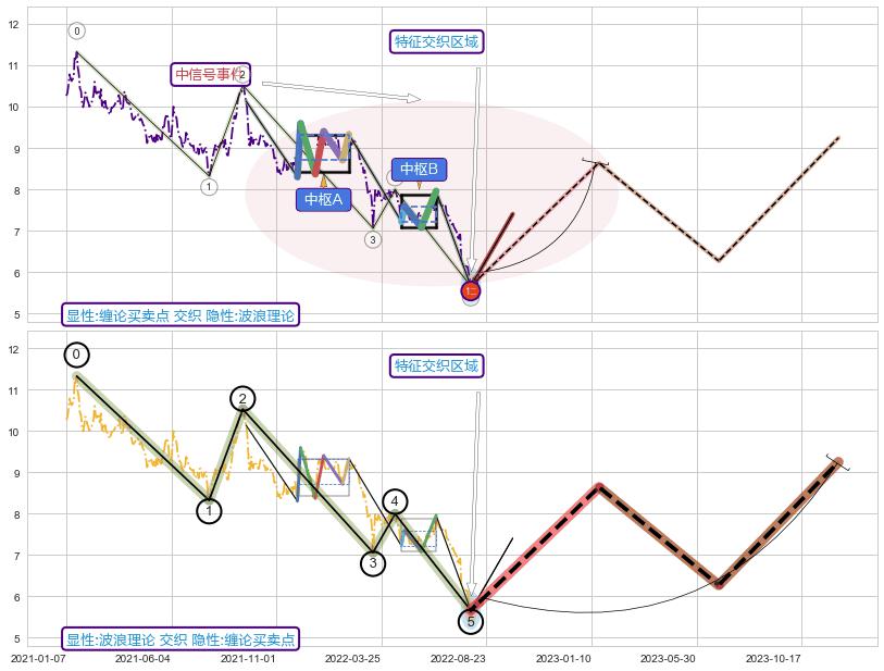➣ 缠论买卖点:下降缠中枢AB形成后猜想拐点1买已到达,猜想后续持续拉升(均值回复)
