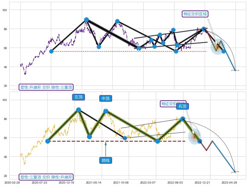 ➢ 升旗形与三重顶信号事件周期长度级别相同,同周期信号事件