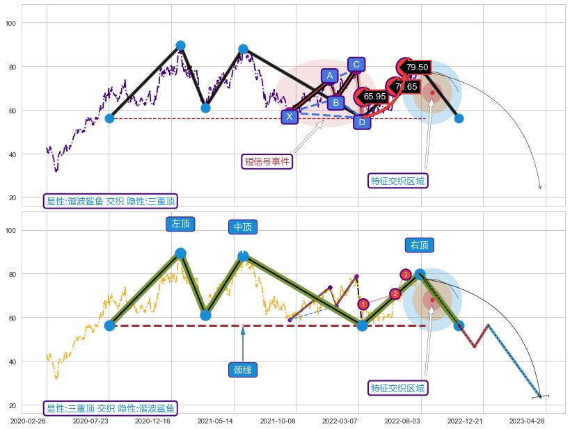 ➢ 谐波鲨鱼属【短级别信号事件】三重顶属【长级别信号事件】长短周期组合信号事件, 短长事件长度比19.76%