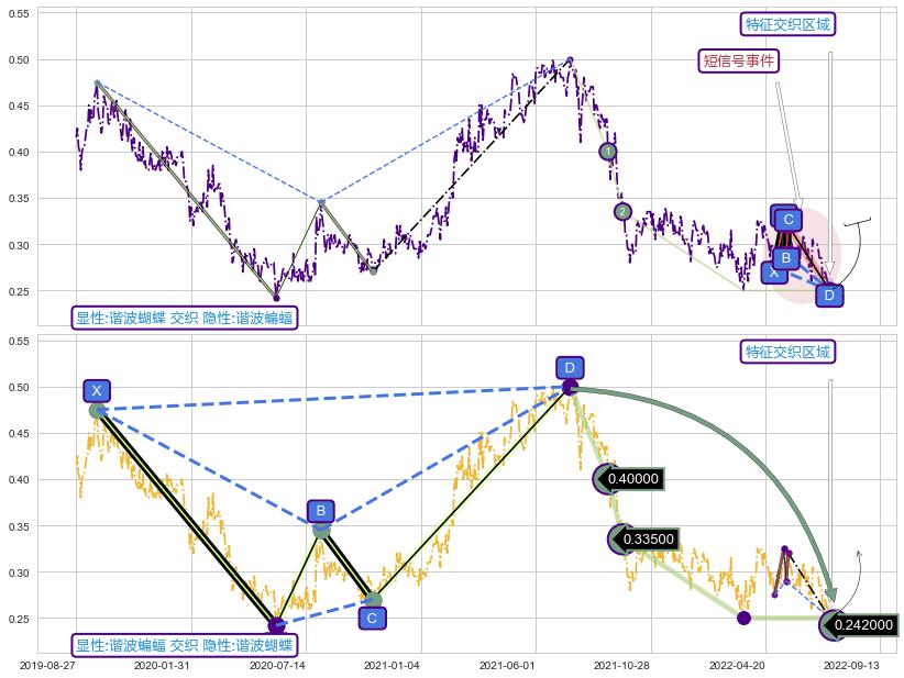 ➢ 谐波蝴蝶属【短级别信号事件】谐波蝙蝠属【长级别信号事件】长短周期组合信号事件, 短长事件长度比11.86%