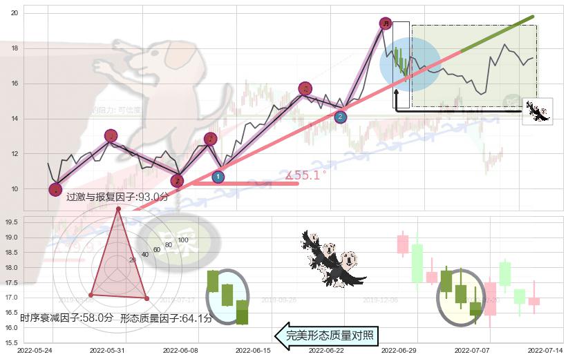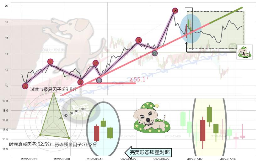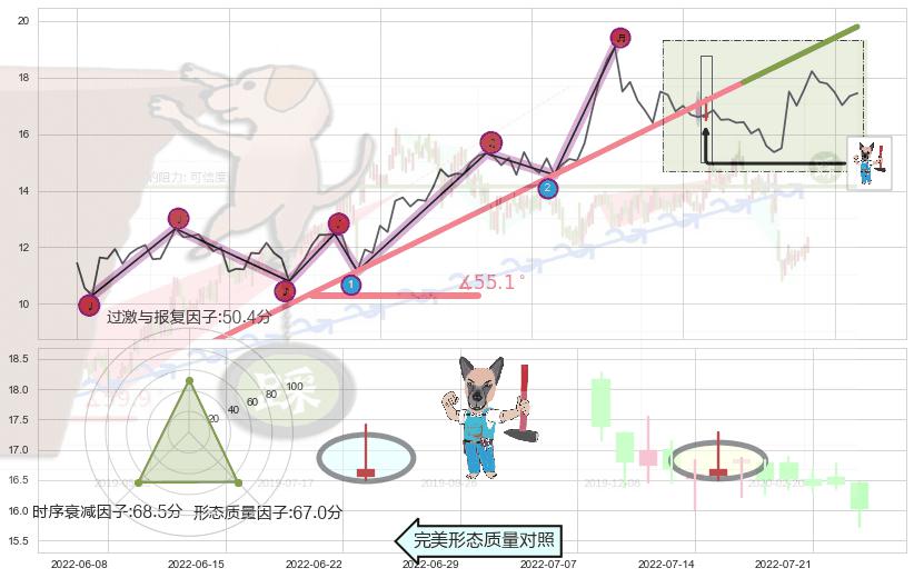 从2022-03-15至2022-07-22,共包含87个交易日,阶段股价上涨52.51%,阶段股价变动位移路程比: 1 : 4,上涨趋势角度: 55.1