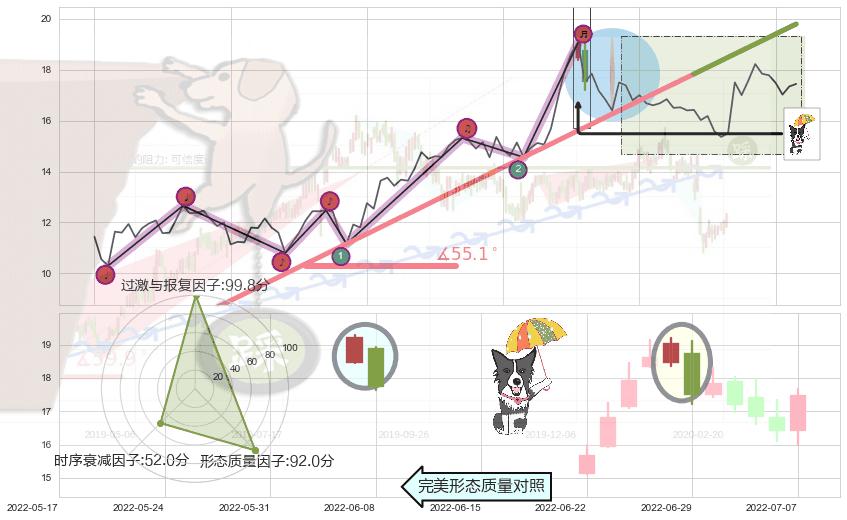 ➢ 2022-03-15-2022-07-22上升趋势存在反转[风险],其原上升趋势的支撑位(19.79)已破位[强阻力信号],原上升趋势角度: 55.1˚