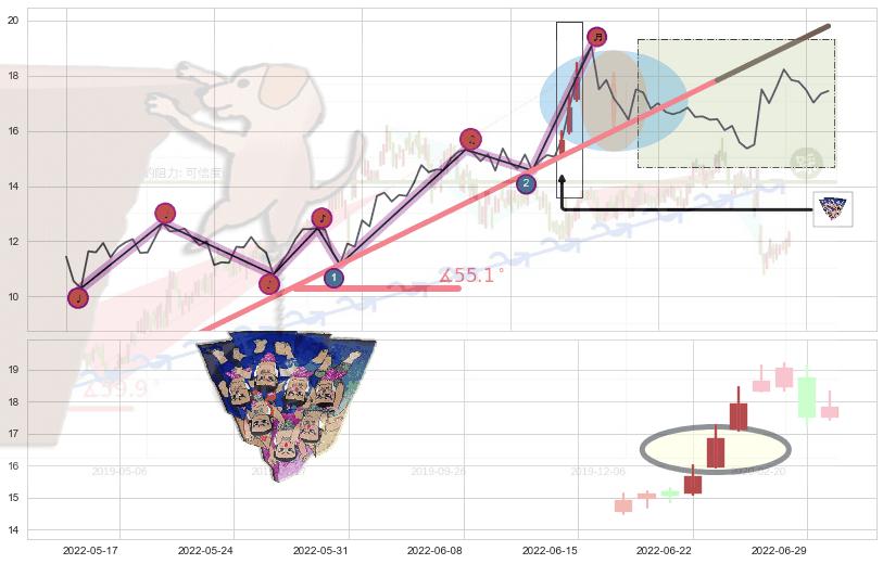 ✂️ 2022-03-15-2022-07-22上升趋势存在反转[风险],其原上升趋势的支撑位(19.79)已破位[强阻力信号],原上升趋势角度: 55.1˚