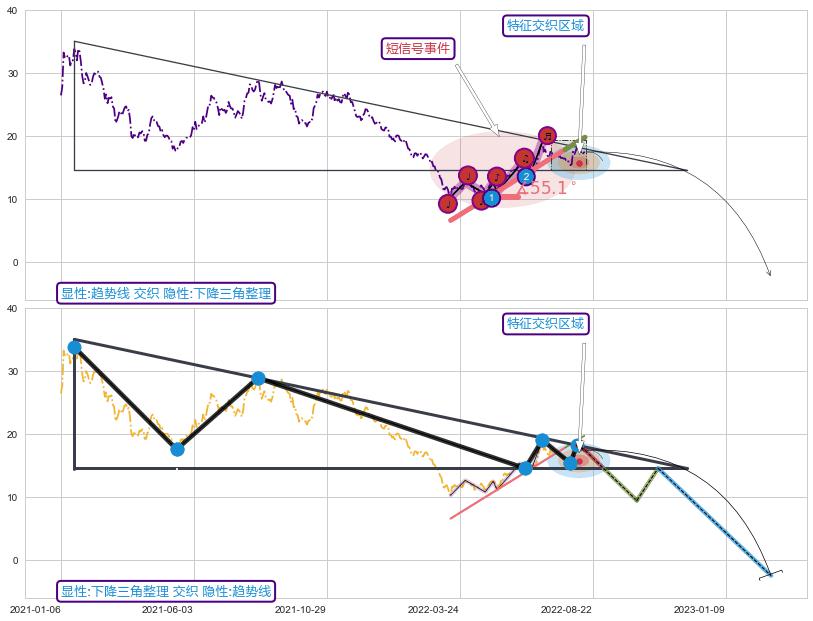 ➢ 趋势线属【短级别信号事件】下降三角整理属【长级别信号事件】长短周期组合信号事件, 短长事件长度比20.52%