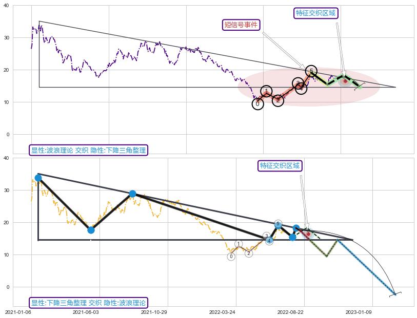 ➢ 波浪理论属【短级别信号事件】下降三角整理属【长级别信号事件】长短周期组合信号事件, 短长事件长度比26.49%
