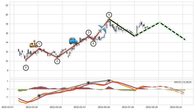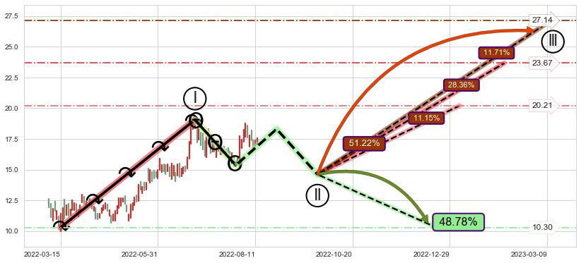 ➣ AI预测: 假定反转启动后, 第❸目标位置(2022-10-24, 15.36)
