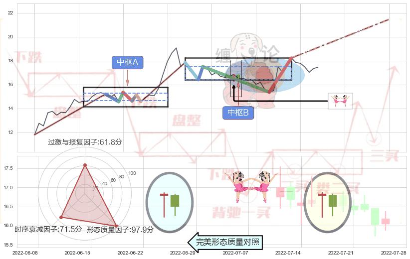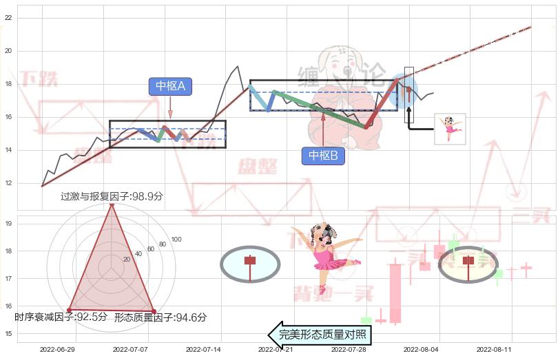 ➣ 【中枢B】:2022-06-30-2022-08-04,中枢由5笔构成,共25交易日, ZG=17.50, ZD=16.40