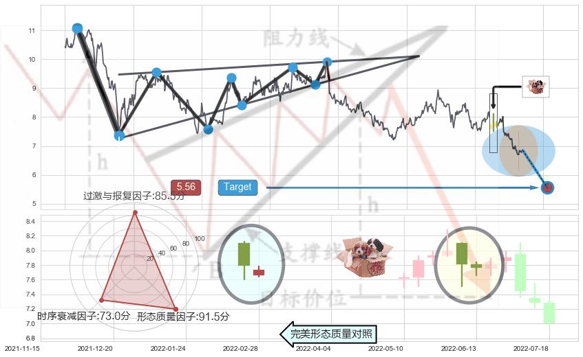 ➣ 【已确认突破】最后价格:6.85与最小【整理】第一目标价格→(2022-10-03: 5.56 )相较: 下跌空间【中等】
