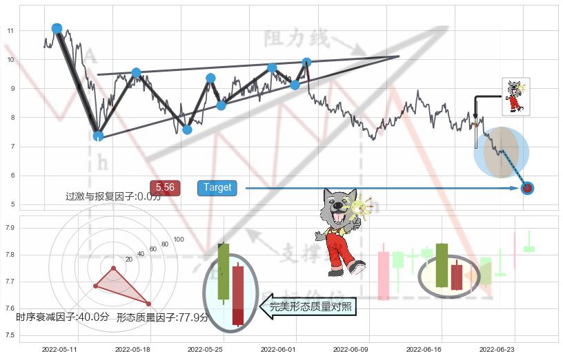➢ 🕰 价格走势在2022-06-06至2022-06-13期间形成底部尽头线(上山虎),残存影响值:2.80