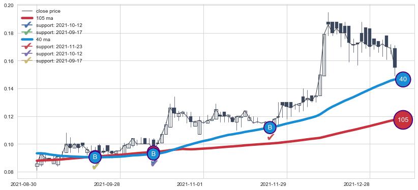 👍 尚未达到多条均线预测的最高波峰价格的平均值, 预期继续上涨