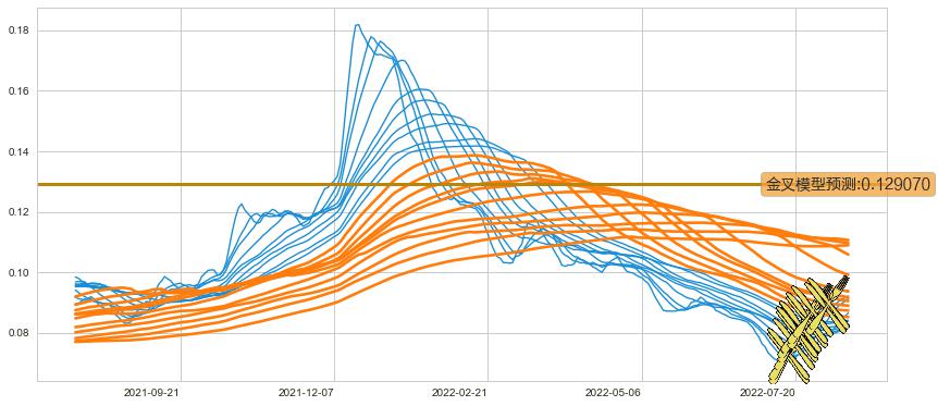➣ 40小时均线于(2022-07-21: 0.0815750)形成【金叉】基于【金叉历史模型】预测金叉后最高波峰价格: 0.120929, 金叉后最高价格0.0950000,尚未达到预测最高波峰价格, 预期继续上涨
