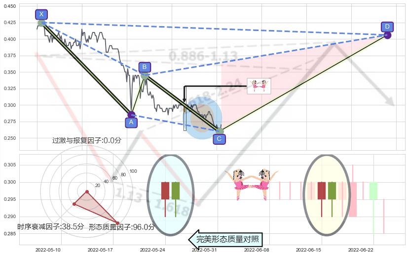 ➢ 双针探底 🔜 谐波鲨鱼下沉击穿c上涨拐点 综合量化分数:53.29 【中性】