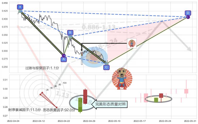 ➣ D点拟合预测价格0.40619,距离最后交易收盘价格0.27000相差 +50.44%