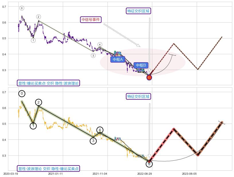 ➢ 【中枢A】:2021-12-21-2022-01-26,中枢由7笔构成,共26交易日, ZG=0.41000, ZD=0.40000