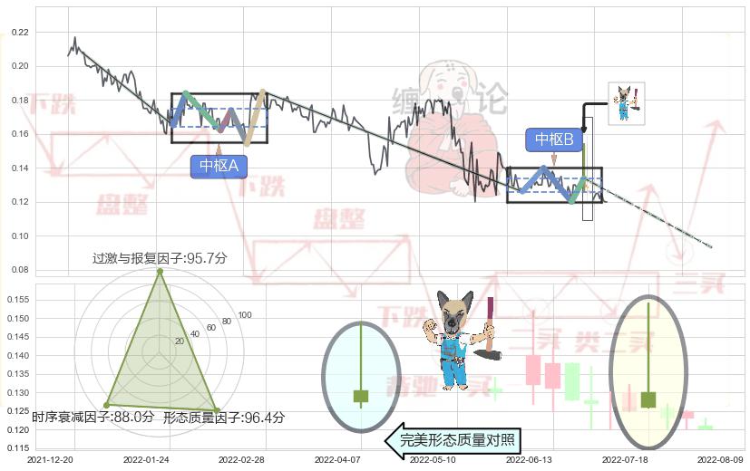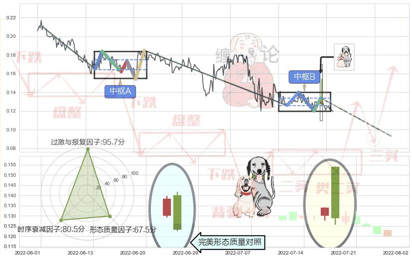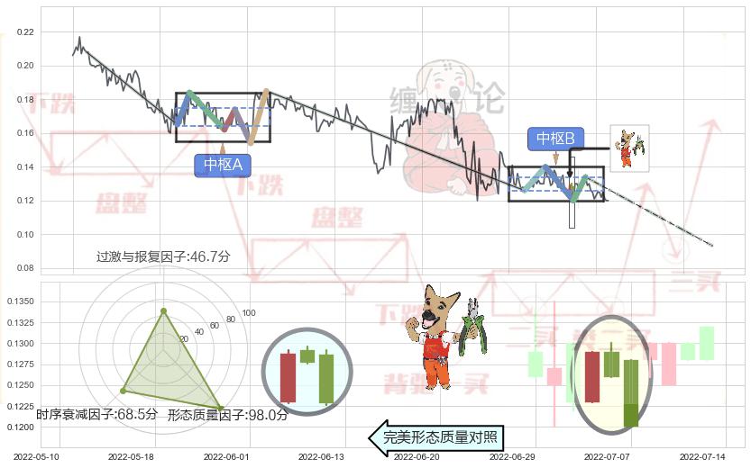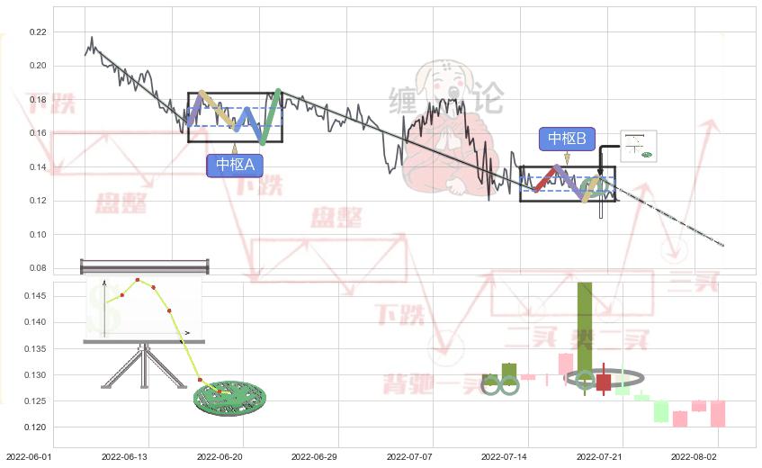 ➢ 【中枢B】:2022-05-12-2022-07-18,中枢由4笔构成,共36交易日, ZG=0.134000, ZD=0.126000