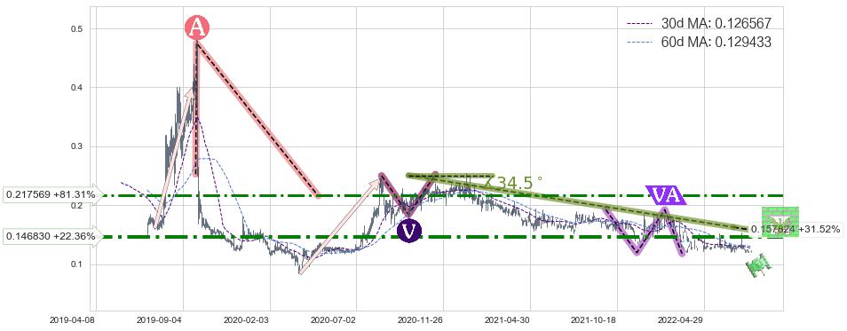 ➢ 【已达成】最小【整理】第一目标价格→(2022-03-15: 0.125435 ), 后续继续【整理】下跌动力依然存在,下跌空间适中