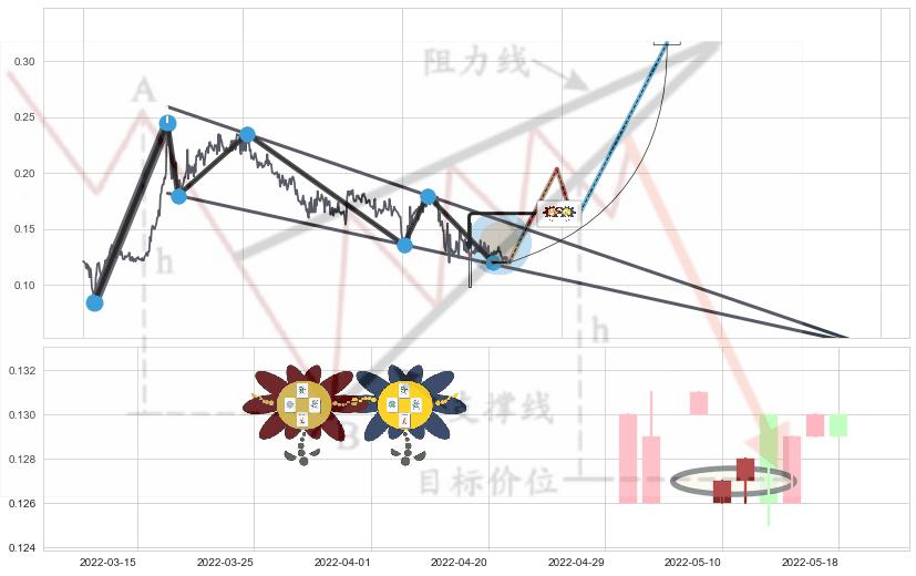 ➣ D点拟合预测价格0.0739600,距离最后交易收盘价格0.120000相差 -38.37%