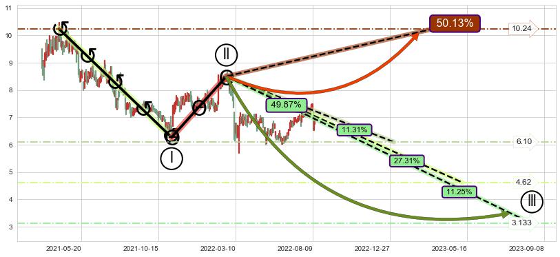 ➣ 2022-03-08到达第❷价格目标位置6.24