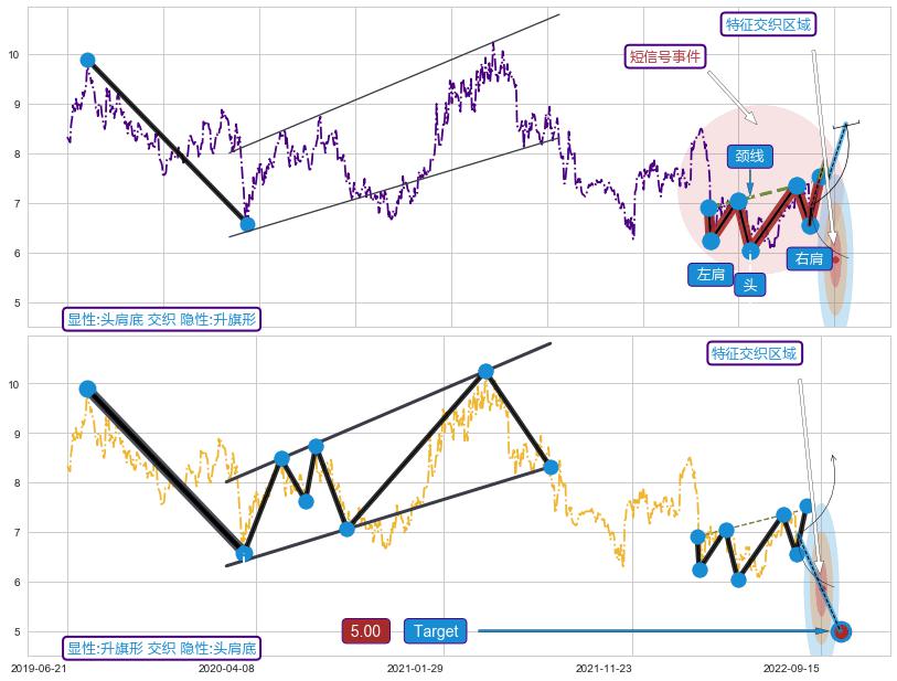 ➢ 头肩底属【短级别信号事件】升旗形属【长级别信号事件】长短周期组合信号事件, 短长事件长度比23.53%
