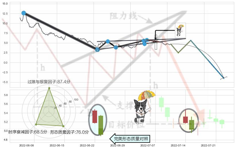 ➢ 🕰 价格走势在2022-06-06至2022-07-04期间形成低档五阳线,残存影响值:3.60