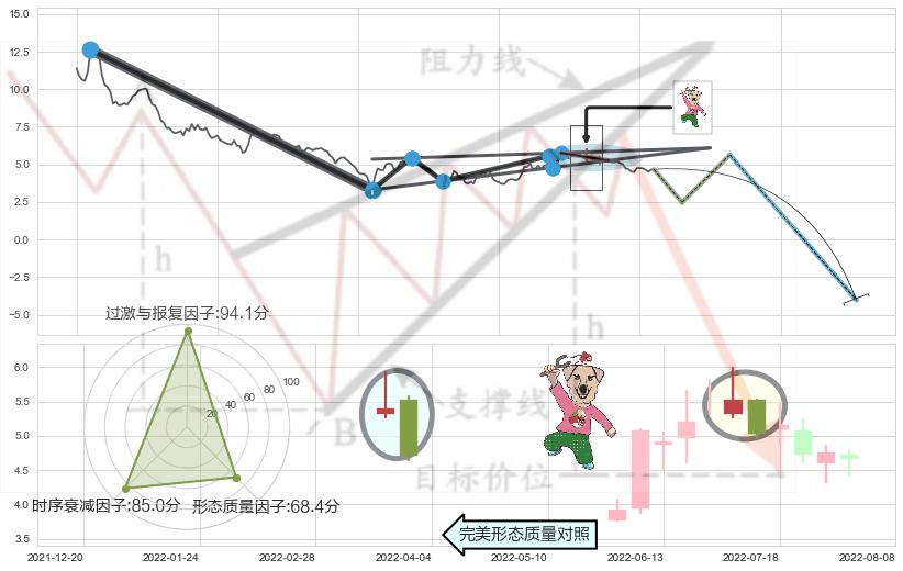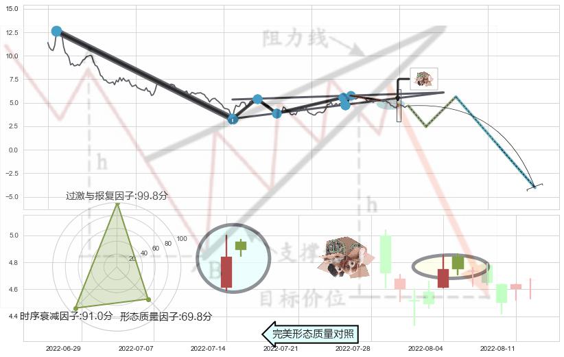 ➢ 🕰 价格走势在2022-08-04至2022-08-05期间形成顶部尽头线(下山虎),残存影响值:-4.23