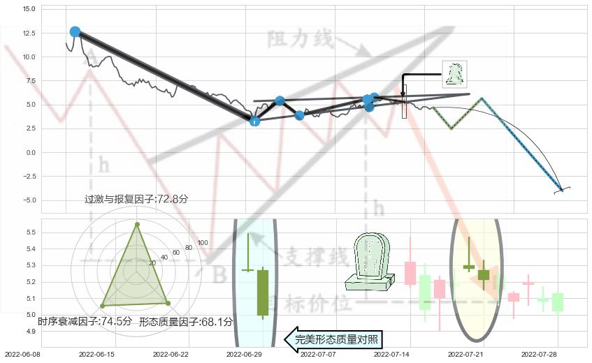 ➢ 🕰 价格走势在2022-07-22至2022-07-25期间形成底部尽头线(上山虎),残存影响值:2.51