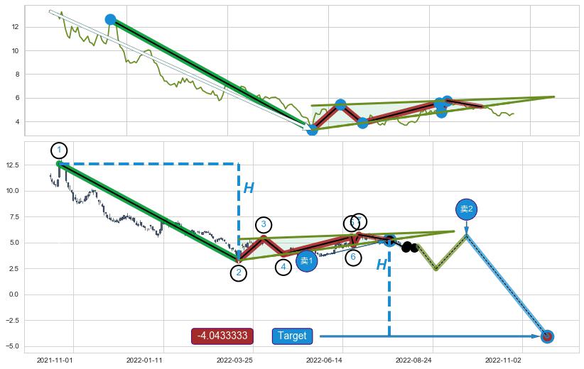 ➢ AI预测: 假定反转启动后, 第❷目标位置(2022-12-07, 4.80)