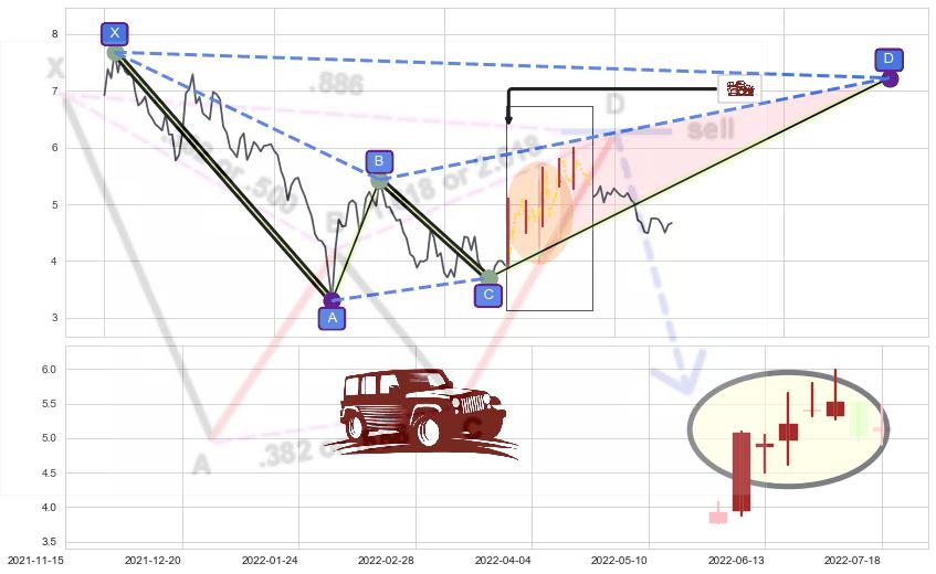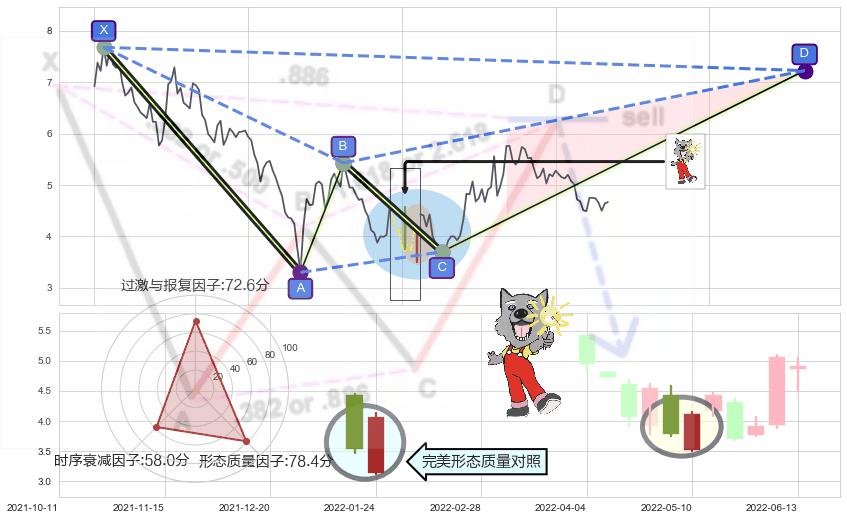 ➣ 未完成【蝙蝠】形态起点X: 2021-12-09, 已到达C点: 2022-05-26, 预测最终D点: 2022-11-10, 共196交易日