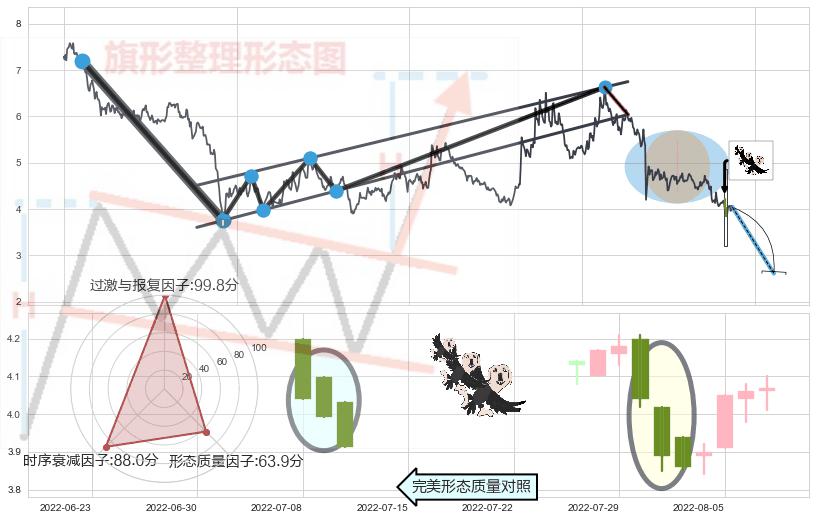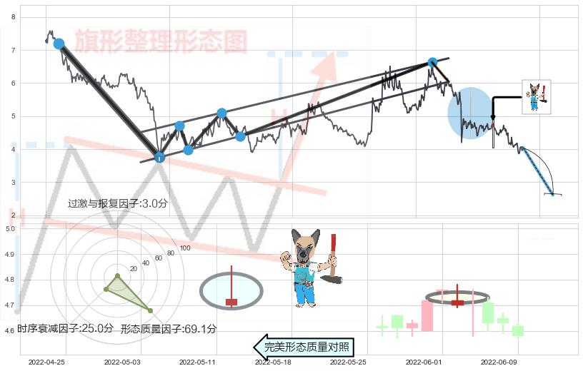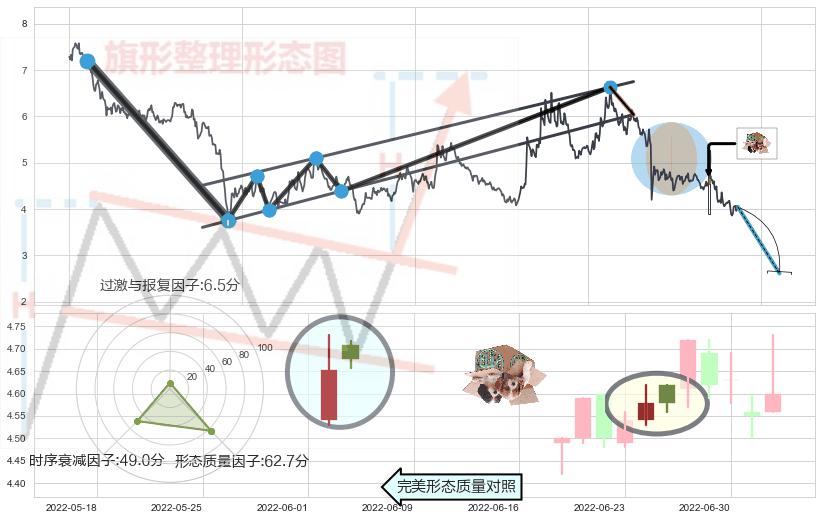 ➢ 看跌(高位倒锤头)流星线 🔜 升旗形支撑破位转换阻力下跌 综合量化分数:44.96 【偏空】