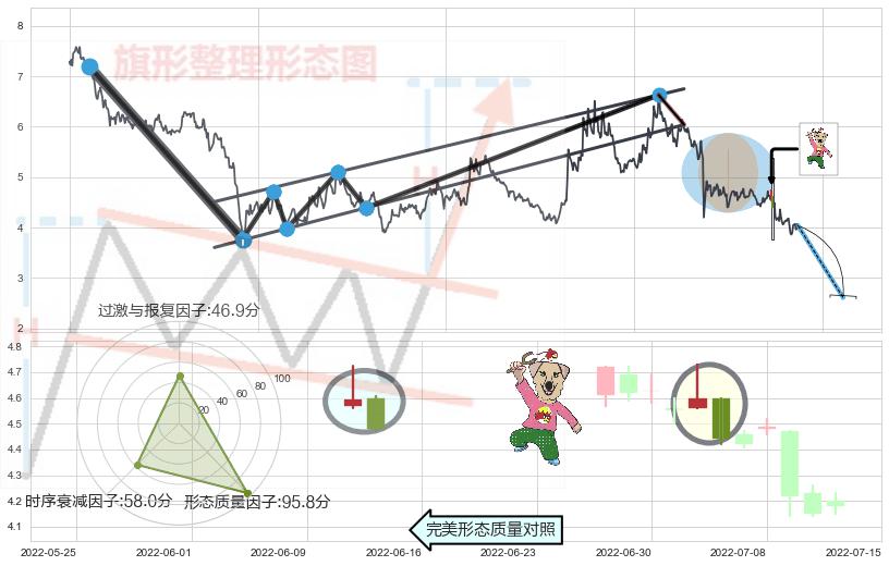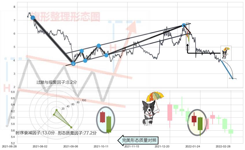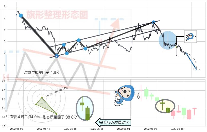 ➢ 下跌螺旋桨 🔜 升旗形支撑破位转换阻力下跌 综合量化分数:44.59 【偏空】