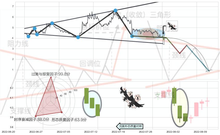 ➢ 🕰 价格走势在2022-08-01至2022-08-03期间形成三只乌鸦,残存影响值:-7.46
