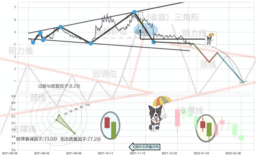 ➣ 下跌螺旋桨 + 扩散三角反转临近支撑猜想转换阻力下跌信号叠加后【目标达成率】极低,【看空】信号叠加【存续影响极大】