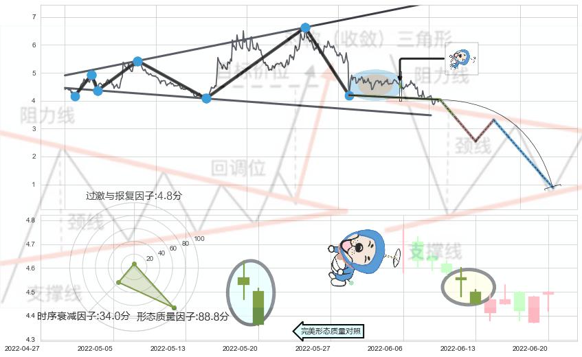 ➢ 🕰 价格走势在2022-06-24至2022-06-27期间形成顶部尽头线(下山虎),残存影响值:-1.55