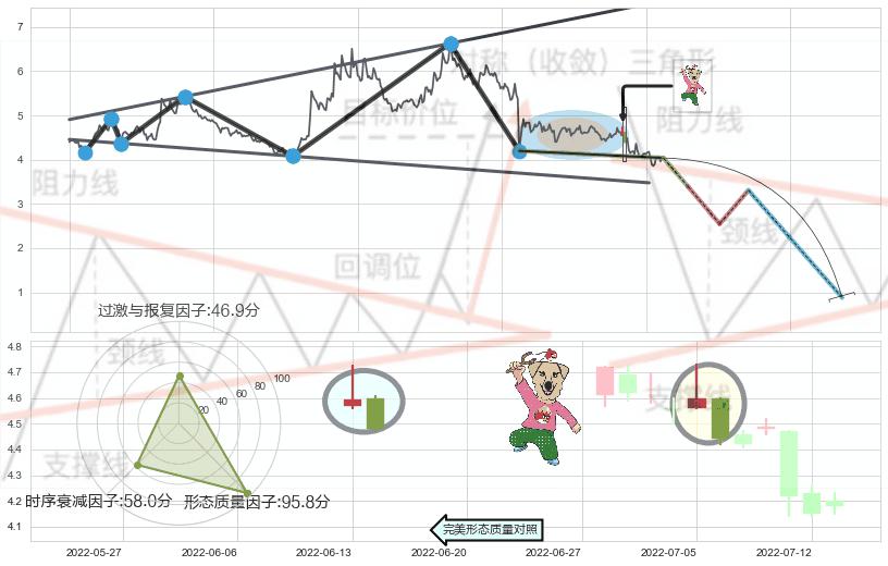 ➢ 【卖1】: 激进型 卖点→(2022-07-06: 4.47 )形成突破下降【对称】三角形整理【整理】形态