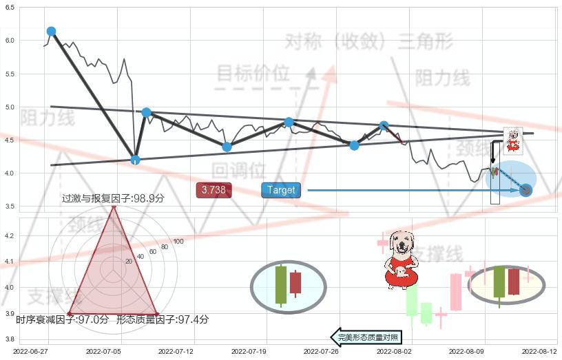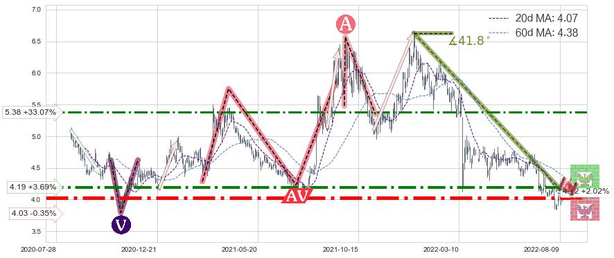 ♘ 阻力价格位4.19,可信任强度73.82%,距离最后交易2022-08-12形成的收盘价格4.04相差 +3.69%