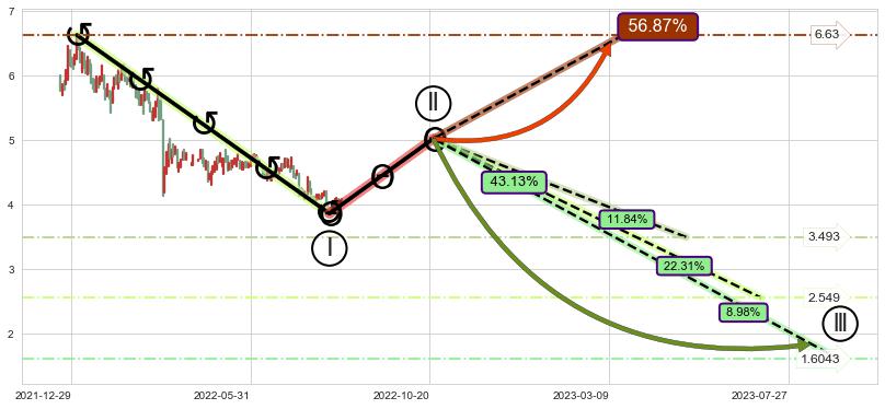 ➣ 循环浪继续向下【平均值】位置(2023-07-06, 2.549),匹配聚类样本比例51.72%, 可能性概率22.31%