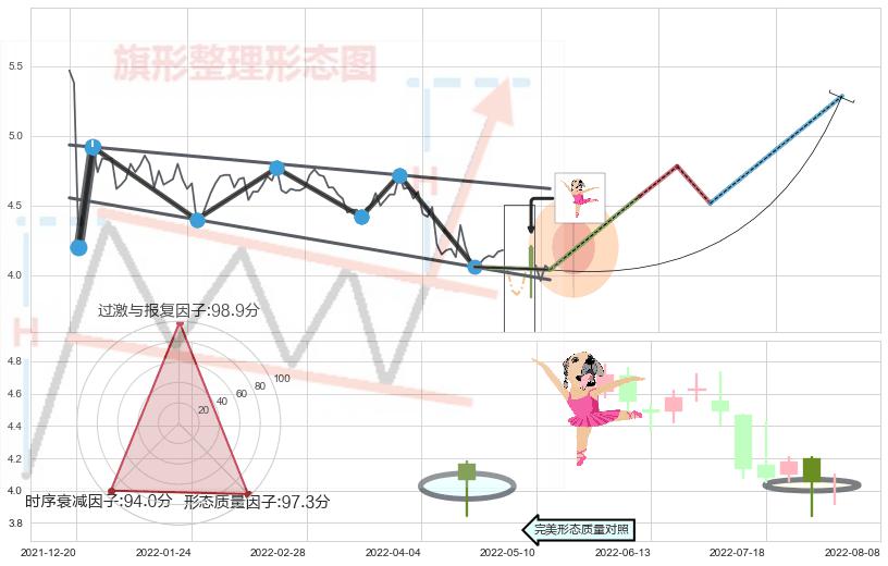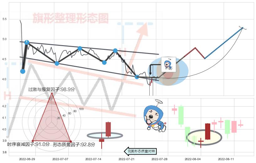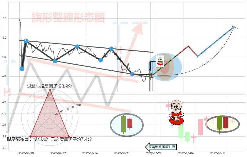 ➣ 【未确认突破,预测即将形成突破】降⚑旗形起点:2022-03-15, 预测突破点:2022-09-08,形态共120交易日