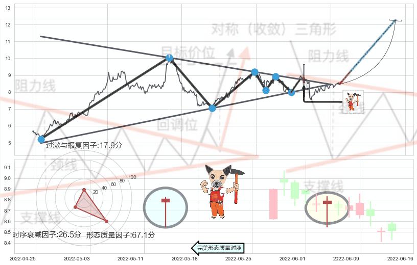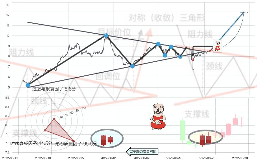 ➢ 【买1】: 激进型 买点 →(2022-05-27: 8.75 )形成突破上升【对称】三角形整理【整理】形态