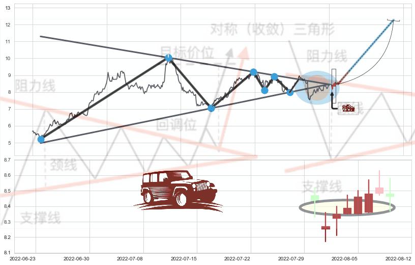 ♘ 支撑价格位8.06,可信任强度71.95%,距离最后交易2022-08-12形成的收盘价格8.47相差 -4.88%