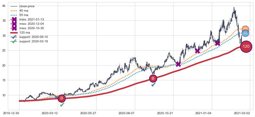 👍 尚未达到多条均线预测的最高波峰价格的平均值, 预期继续上涨