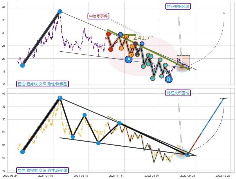 ➢ 趋势线属【中级别信号事件】降楔型属【长级别信号事件】中长周期组合信号事件,中长事件长度比42.15%