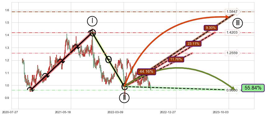 ➢ 循环浪继续向上【最低】位置(2023-03-22, 1.2559),匹配聚类样本比例26.62%, 可能性概率11.76%