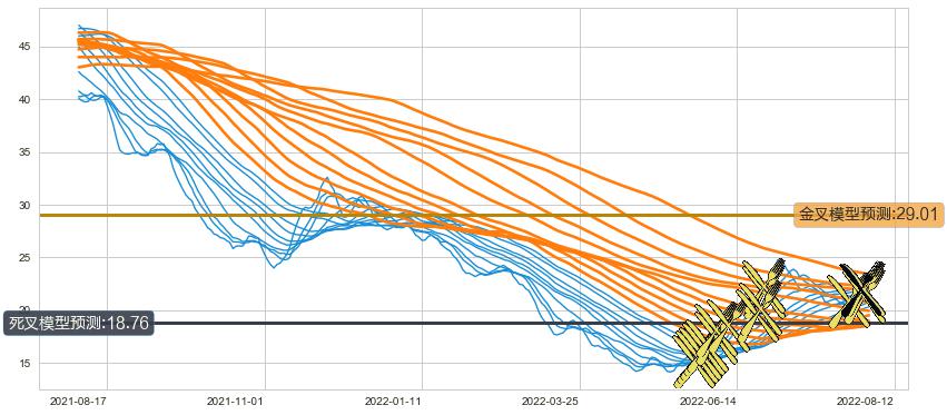➢ 34小时均线于(2022-08-09: 21.86)形成【死叉】基于【死叉历史模型】预测死叉后最低波谷价格: 18.76, 死叉后最低价格21.15,尚未达到预测最低波谷价格, 预期继续下跌