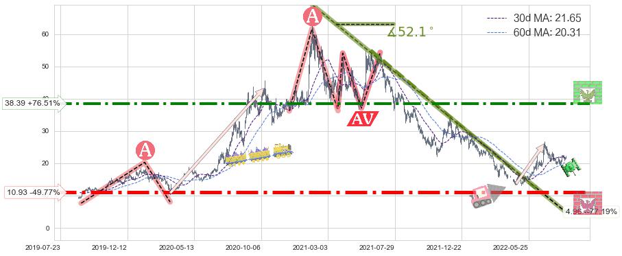 ➣ 【仅预测突破】最后价格:21.75与预测突破价格:30.22→【空间中等】后续最小【整理】第一目标价格→(2022-12-22: 76.26 )