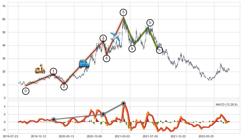 ➣ 第一, 三, 五浪上涨动能逐渐【增强变大】,趋势不断加固